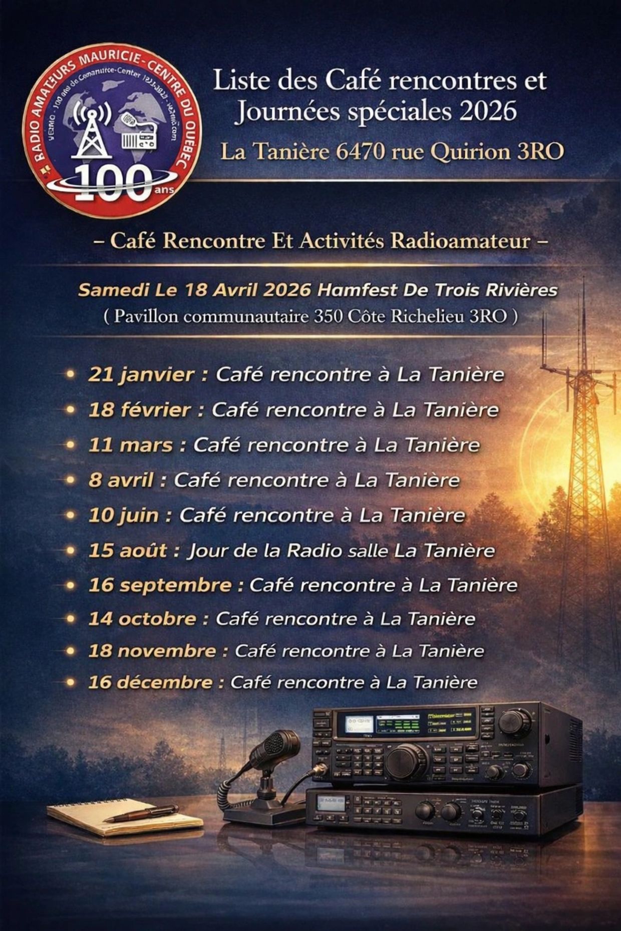 DE PLUS, IL EST POSSIBLE DE DEVENIR AMI DU CLUB VE2MO POUR CEUX QUI N'ONT PAS DE CERTIFICAT RADIOAMATEUR ET INTÉRESSÉ À SUIVRE NOS ACTIVITÉS.